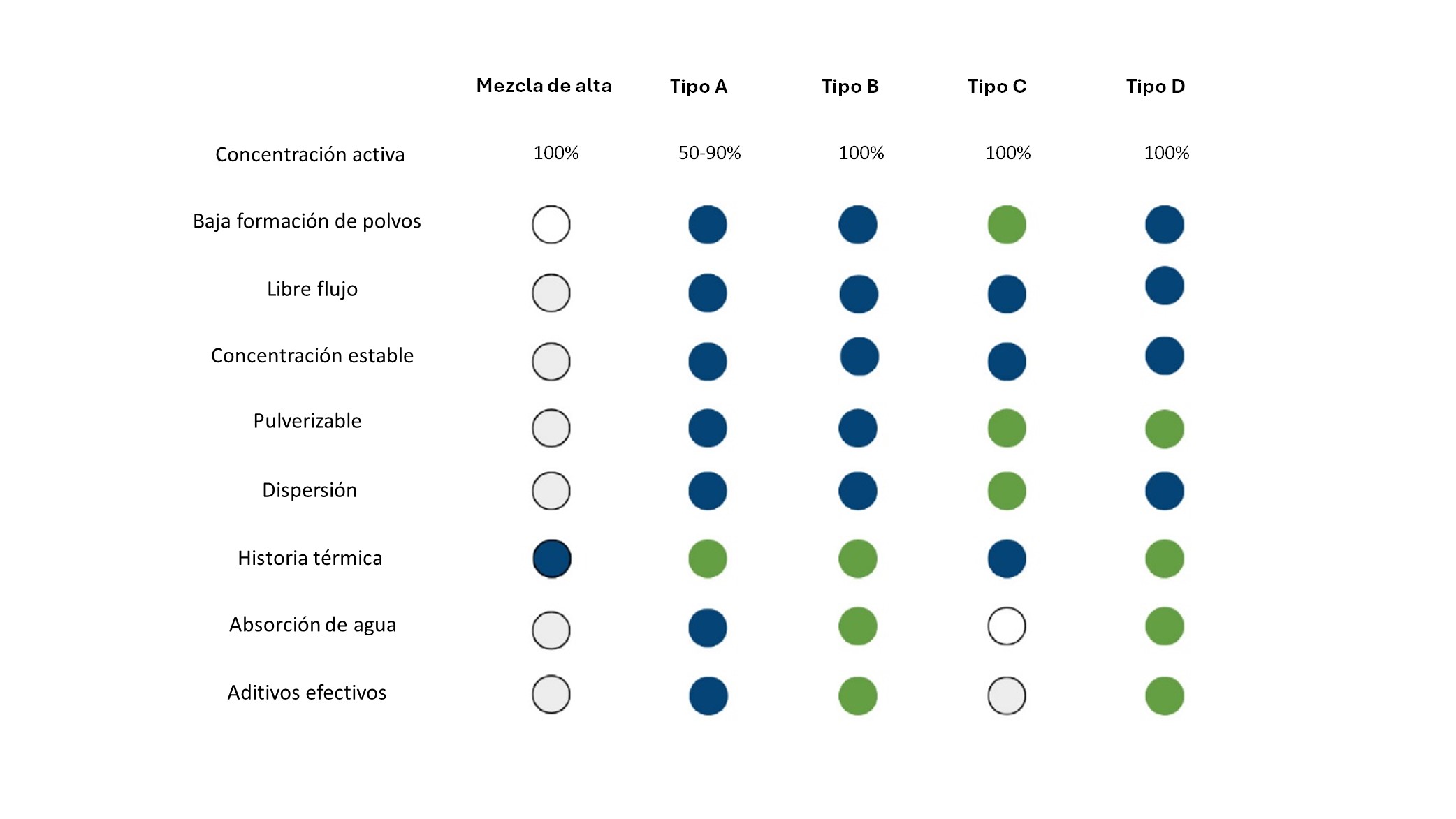 Concentrado de alta actividad: una mezcla peletizada de ultraalta concentración compuesta por más de un 50% de ingredientes activos en una base de resina polimérica. Gracias a su superior resistencia a la hidrólisis, el Tipo A es la forma preferida para aditivos de difícil dispersión o en condiciones de transferencia complicadas. Puede cargarse en vagones tolva y transportarse mediante sistemas tradicionales de transporte neumático.